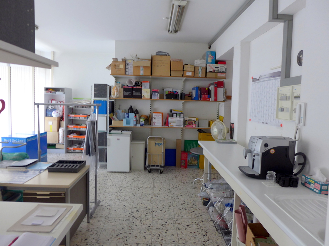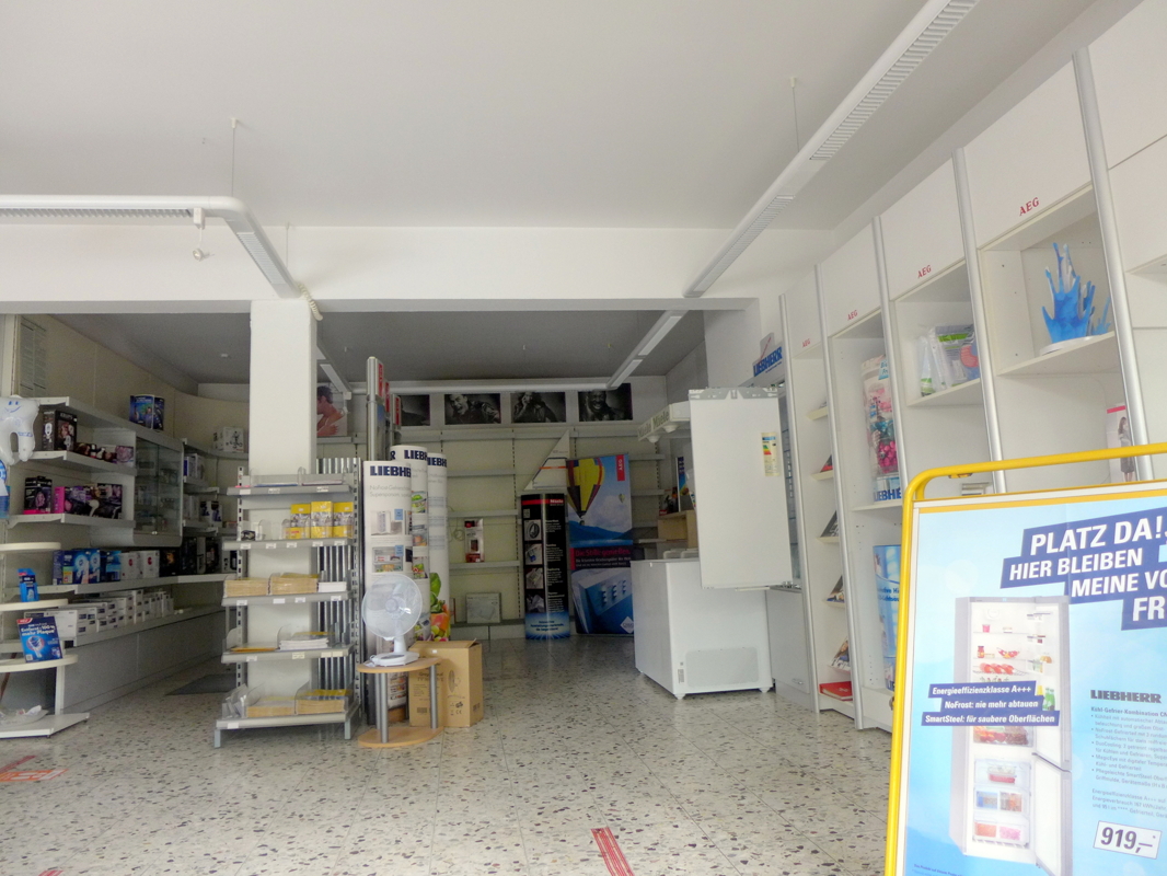 - Der Verkaufsraum mit großen Schaufenstern, aktuell ist