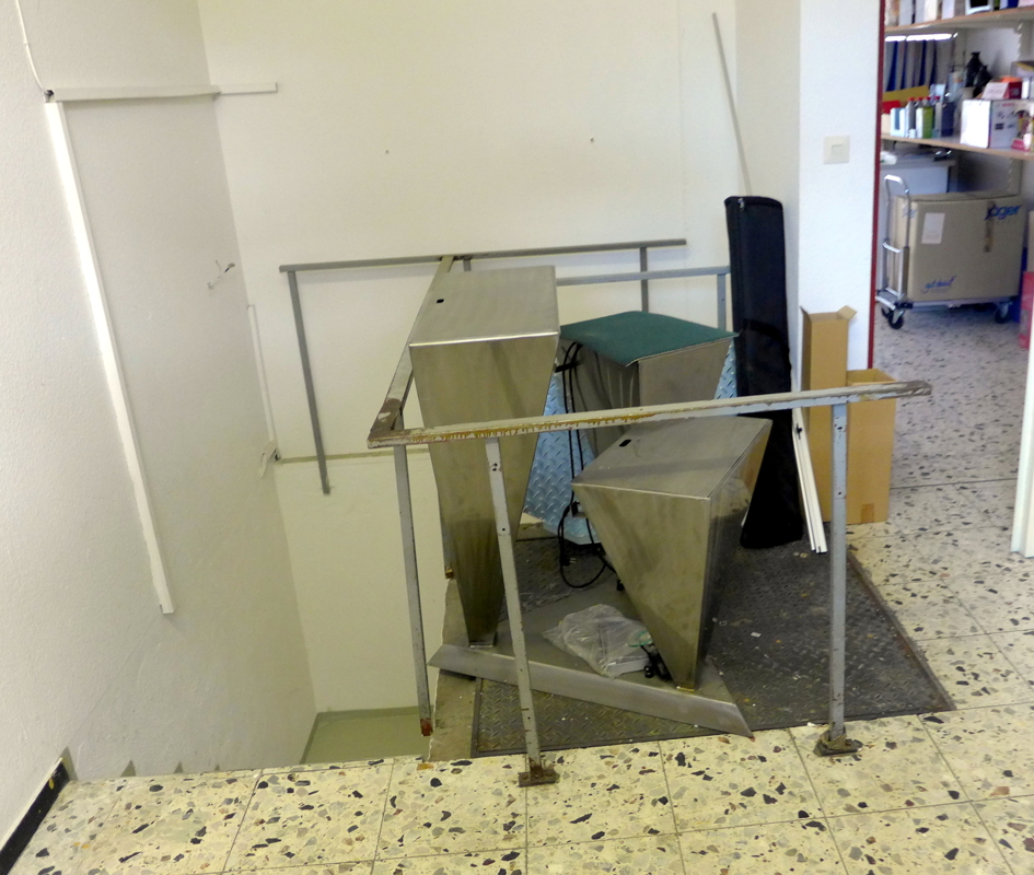 - Eingang hinten, Flur mit Aufzug für Geräte und Ersatzteile