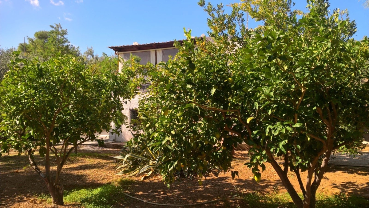Im Gartenbereich befinden sich Olivenbäume, Oleanderbüsche, Zitronenbäume und Wein.