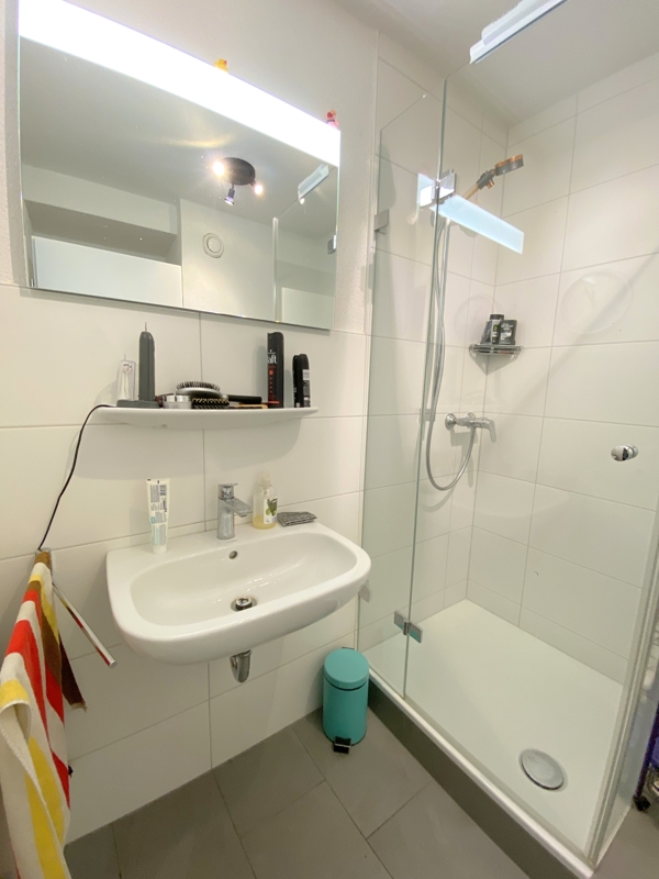 Über den Flur erreicht man das Badezimmer mit Dusche, Waschtisch und einem WC. Das Badezimmer wurde 2022 komplett saniert.