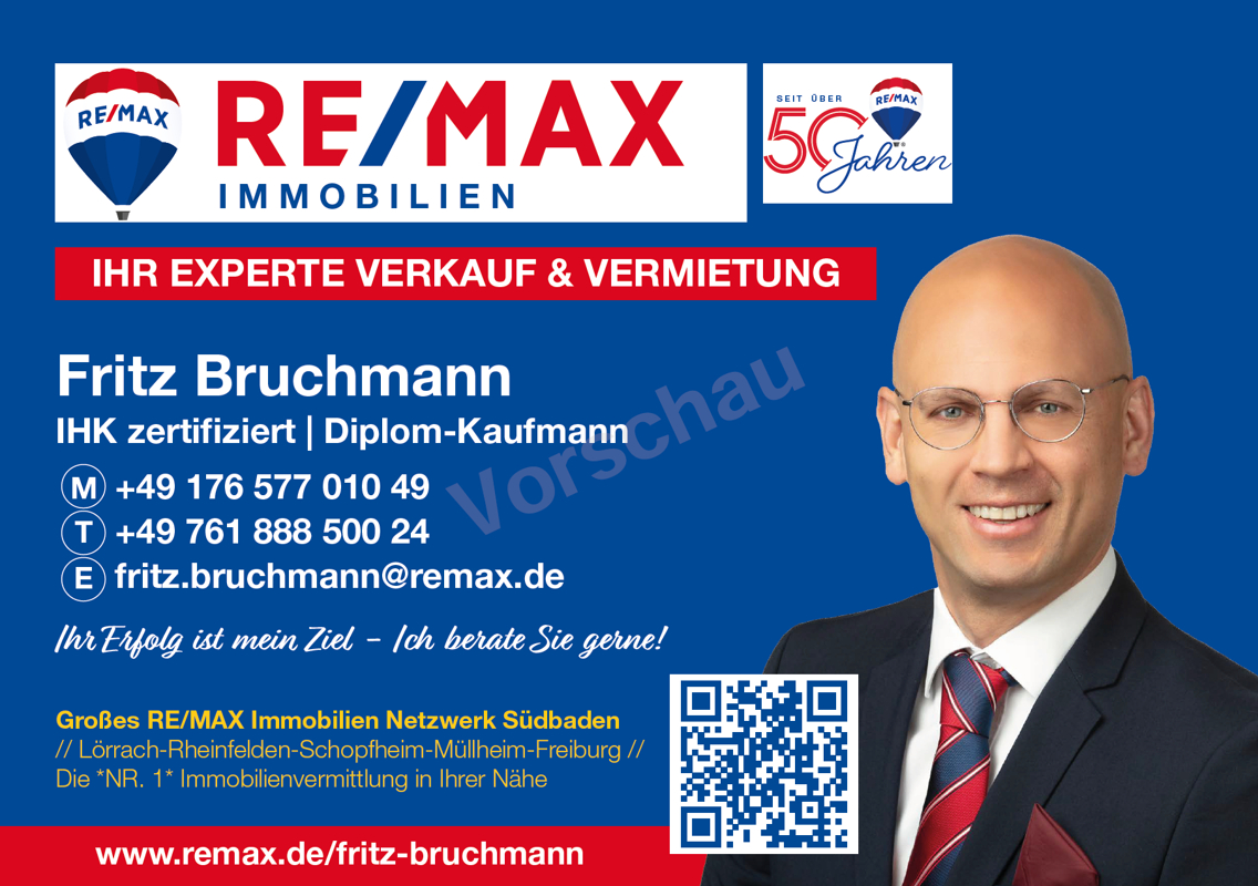RE/MAX IMMOBILIEN NETZWERK SÜDBADEN, FRITZ BRUCHMANN: IHR EXPERTE VERKAUF & VERMIETUNG, +49 176 57701049, +49 761 88850024, fritz.bruchmann@remax.de, www.bruchmann-remax.de