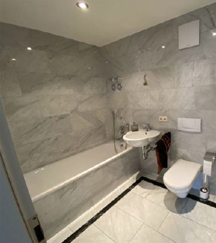 - BAD: 2 absolut zeitgemäße mit weißem Marmor ausgebaute hochwertige Bäder: einmal 1 Dusche, einmal 1 Badewanne, je 1 Waschbecken, 1 WC und 1 Waschmaschinen-Anschluss