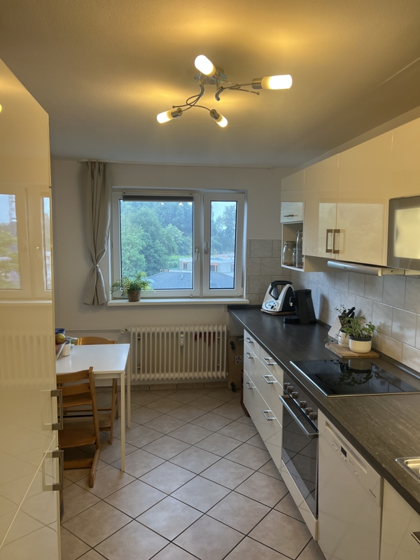 - KÜCHE: 1 schöne helle Tageslicht-Wohnküche mit attraktiver weißer moderner Einbauküche (EBK), einschl. Kücheneinrichtung mit Elektrogeräten u.a. sep. Kühlschrank-Gefrierkombination
