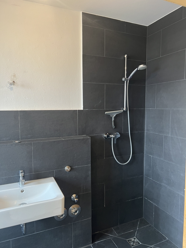 o Bad: Großflächige hübsche schwarze Fliesen als edler Kontrast
