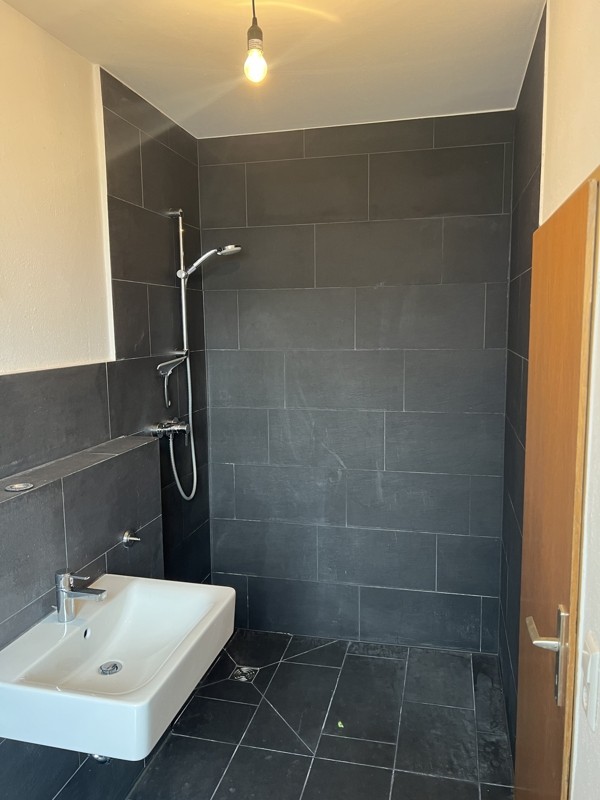 o Bad: Großflächige hübsche schwarze Fliesen als edler Kontrast
