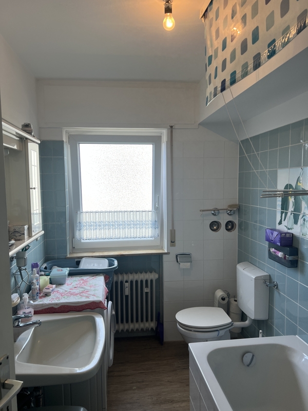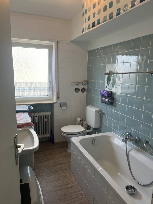 - TAGESLICHT-BAD: 1 Waschbecken, 1 WC, 1 Badewanne mit Duschvorrichtung, 1 Waschmaschinen-Anschluss